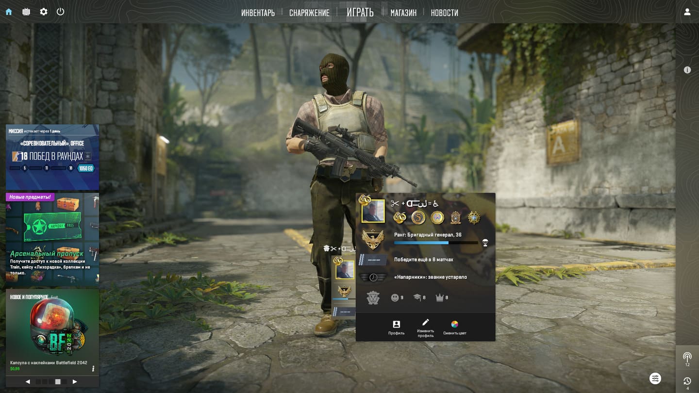 💰Голда: 0.00; 🧤Перчатки: "Mimicry"; 🔪Ножи: Mantis "Genesis" ⭐️Редкие скины: 4
