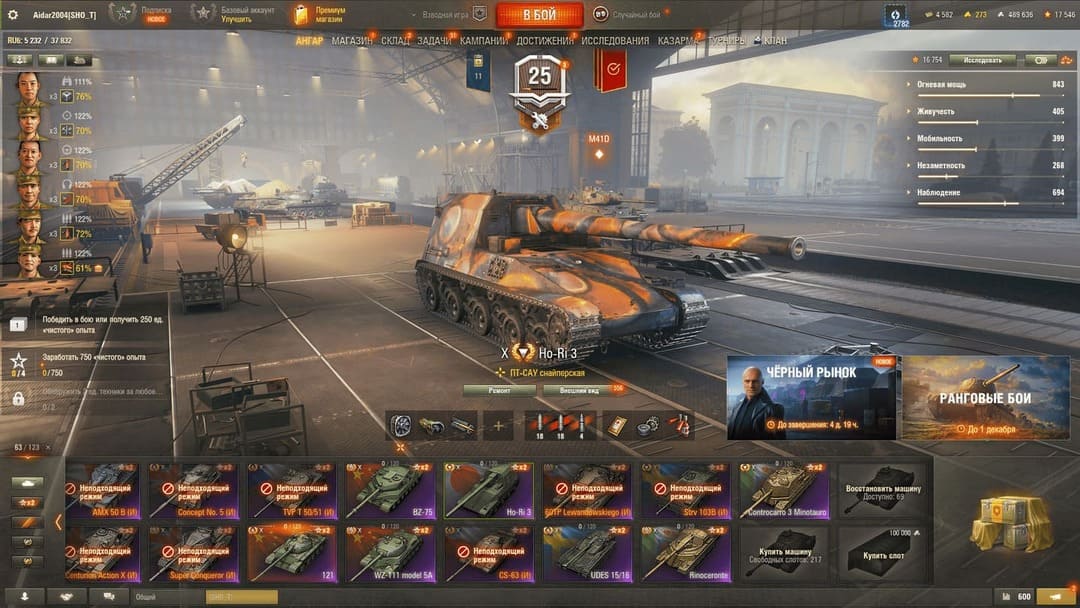🎌Количество боев: 21 000; 🏆Процент побед: 51%; 💰Количество кредитов: 3.7 млн