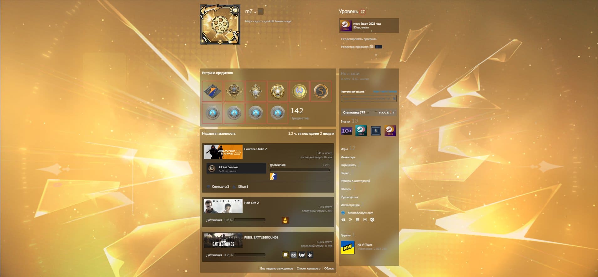 ⭐️Звание: Глобал;🌟Prime Status: Есть;✨Предметов в инвентаре: 122;💲Стоимость инвентаря: 85000 руб;