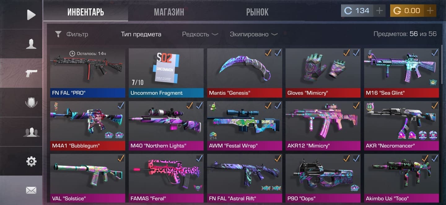 💰Голда: 1868.55; 🧤Перчатки: "Fossil"; 🔪Ножи: Kunai "Poison"; ⭐️Редкие скины: 3