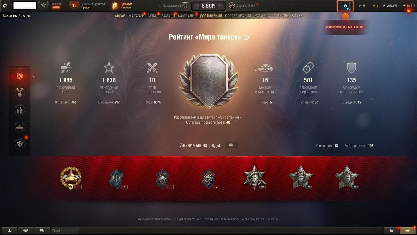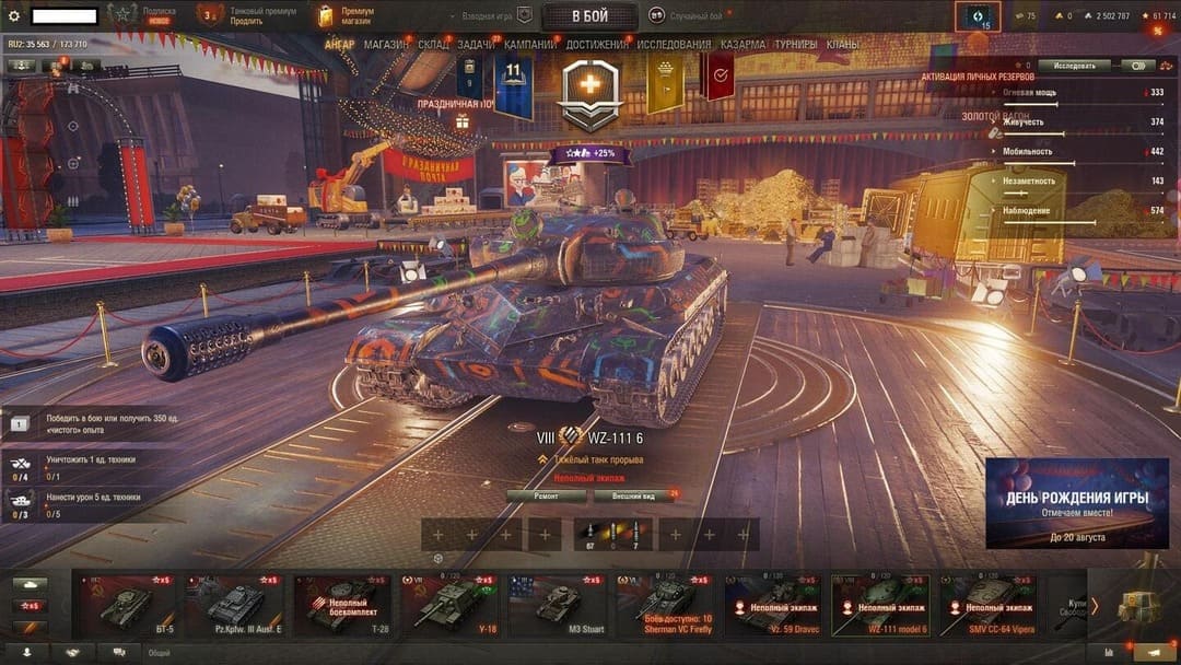 🎌Количество боев: 5 000; 🏆Процент побед: 46%; 💰Количество кредитов: 5.84 млн