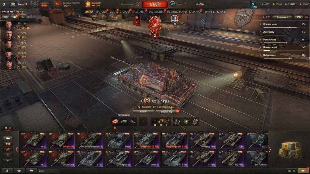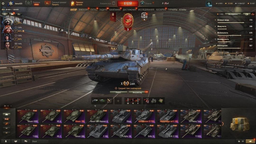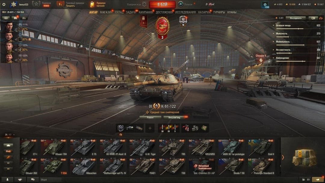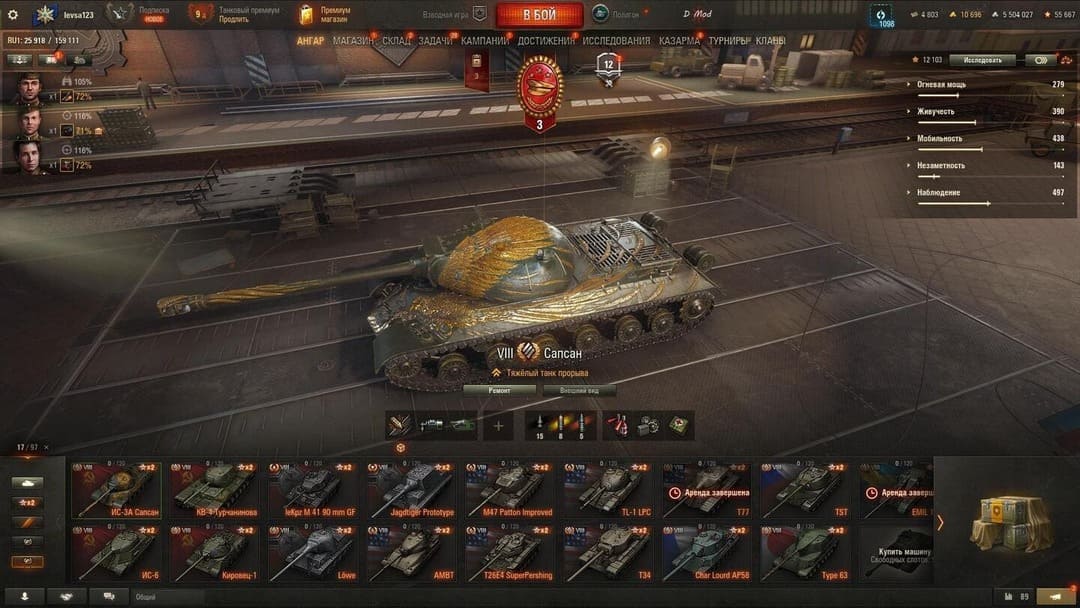 🎌Количество боев: 5 000; 🏆Процент побед: 46%; 💰Количество кредитов: 5.84 млн